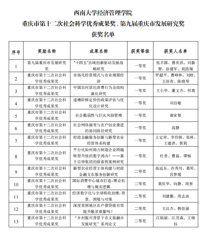 公司教师荣获重庆市第十二次社会科学优秀成果奖、第九届重庆市发展研究奖