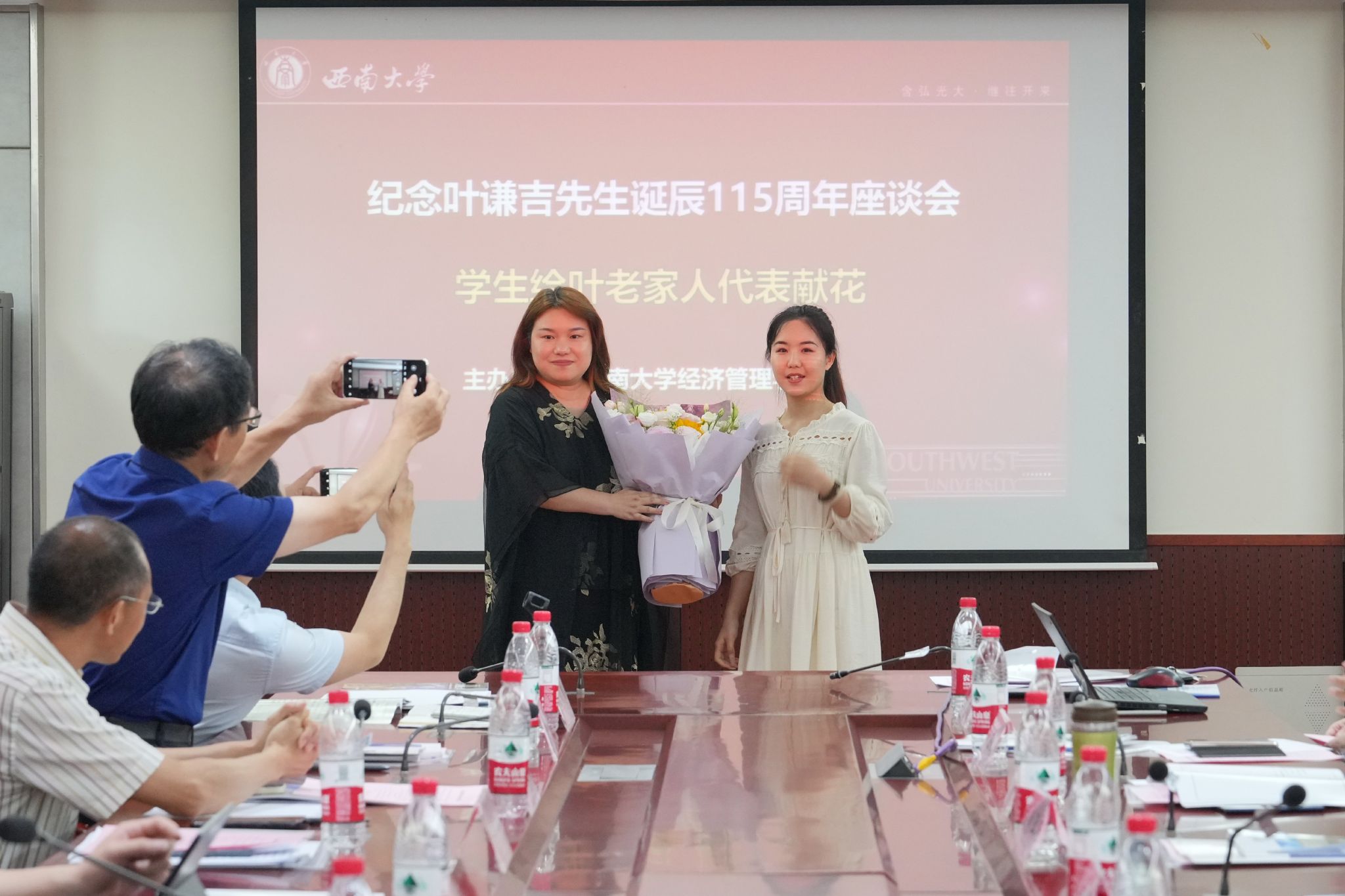 经济管理公司党委书记卢跃进详细介绍了叶谦吉先生的生平事迹。2017级“叶谦吉班”员工代表周梦圆向叶谦吉先生的孙女叶炜女士献花,表达了对先生的深切缅怀和崇高敬意。