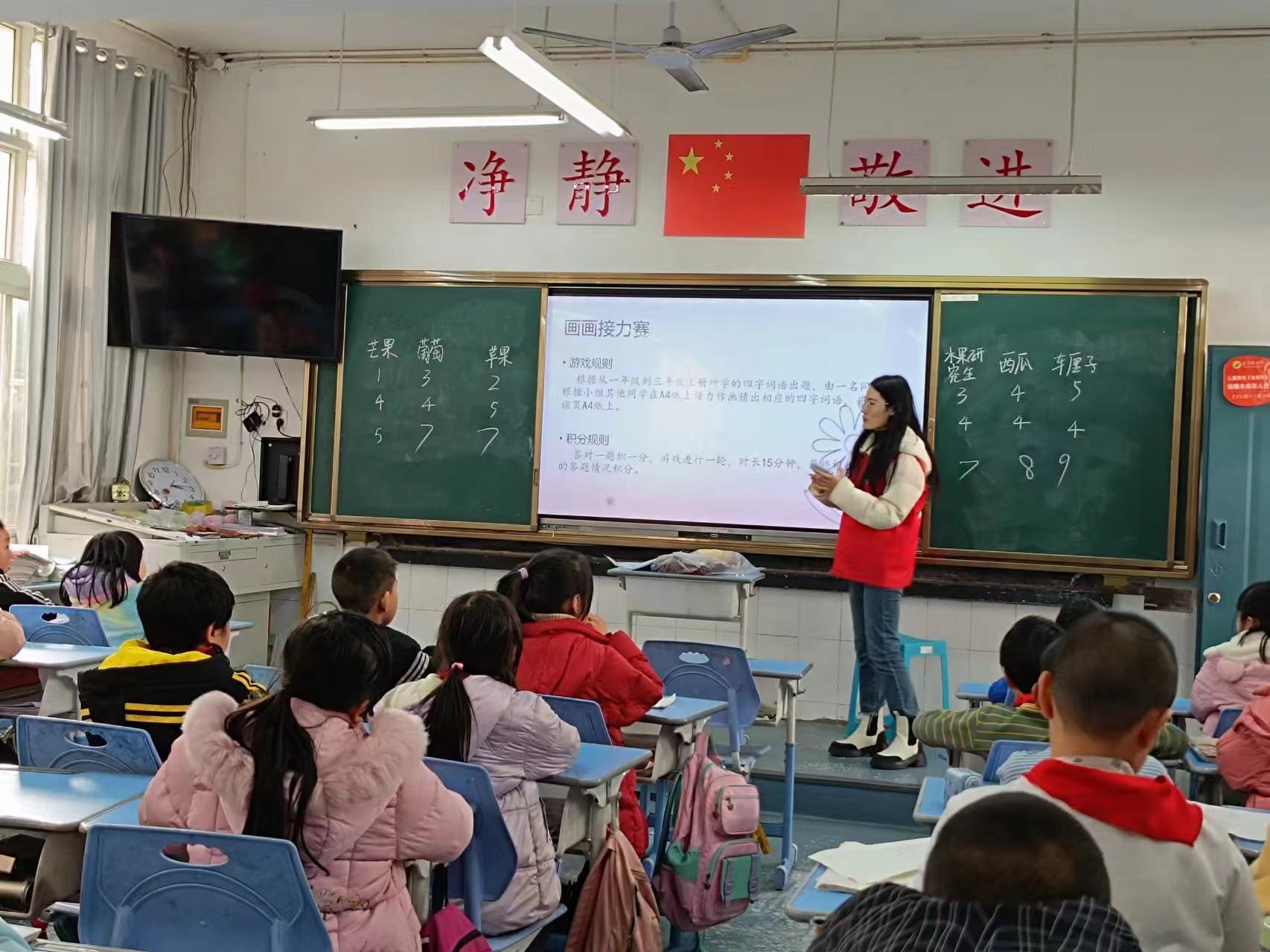 实践队成员谭励慧从缓解孩子们的学习压力出发,给孩子们带来了一堂以“水果大比拼”为主题的趣味体育课。课堂分为“水果蹲”和“成语画画接力赛”两个板块,两个活动分别侧重身体运动和团队协作,课程激发了孩子们的运动热情和创造力,培养了孩子们相互配合、团结协作的能力。