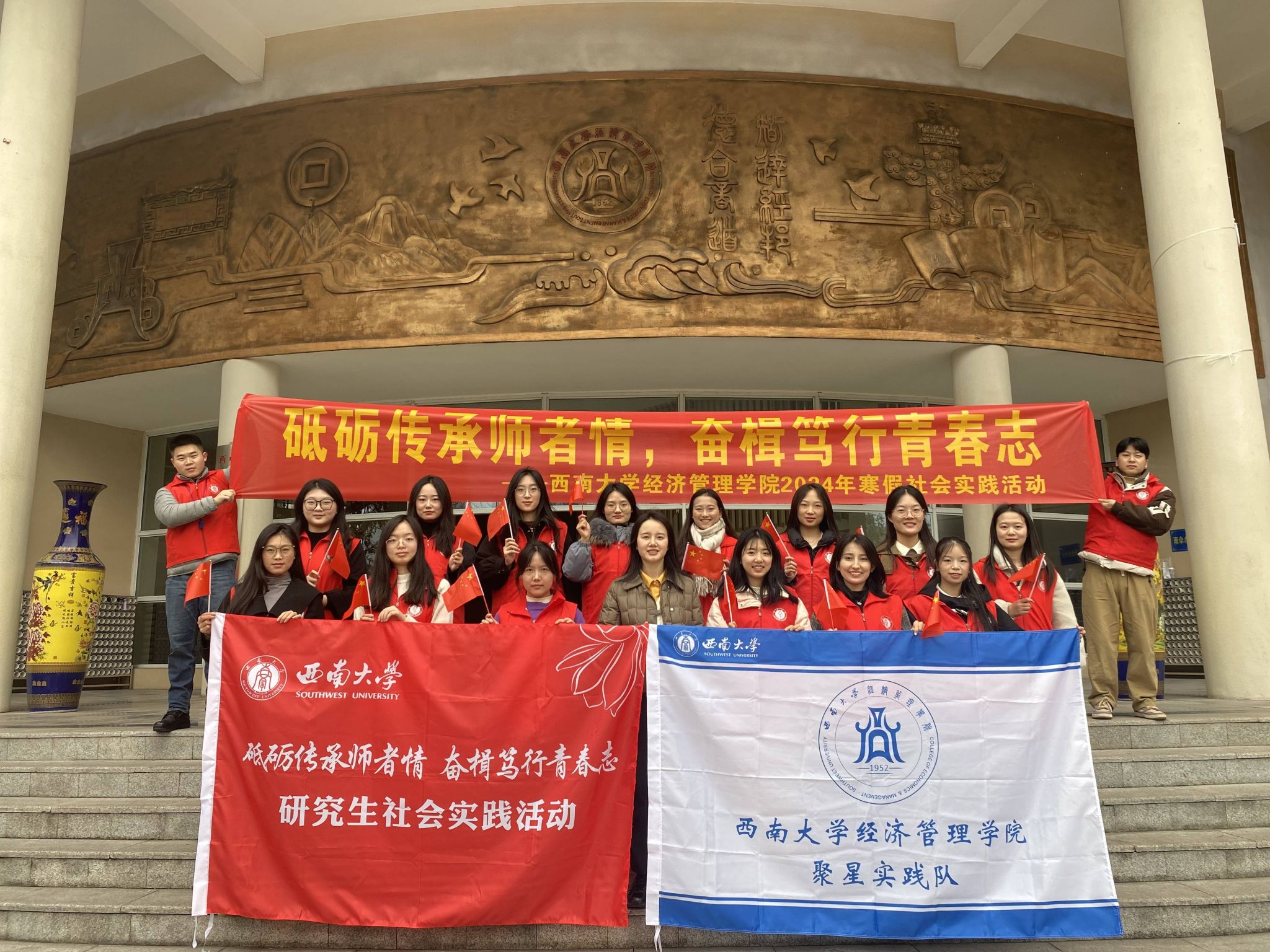 为深入学习习近平新时代中国特色社会主义思想,全面贯彻落实党的二十大精神,助力乡村教育乡村振兴,弘扬教育家精神与志愿服务品质,引导广大青年研究生在实践中坚定理想信念,在奋发有为中践行初心使命。sunbet积极响应公司开展2024年寒假研究生社会实践活动的号召,组织开展以“砥砺传承师者情,奋楫笃行青春志”为主题的寒假社会实践教育活动。为此,公司成立“经管·聚星”实践队,于1月8日至9日前往重庆市北碚区金刀峡镇金刀峡小学开展实践活动,以引导和帮助广大研究生以不懈奋斗作为青春底色,以实际行动肩负时代使命,以青春力量践行二十大精神。