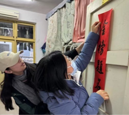 在2024年全国硕士研究生考试即将到来之际,公司党委副书记李玉胜同志带领毕业年级辅导员叶海英老师、吴玲玲老师,于12月15日到公司凿壁偷光考研自习室和员工寝室看望并慰问正在积极备考的同学,并为同学们送上考研冲刺复习资料、暖冬巧克力、金榜题名书法祝联。