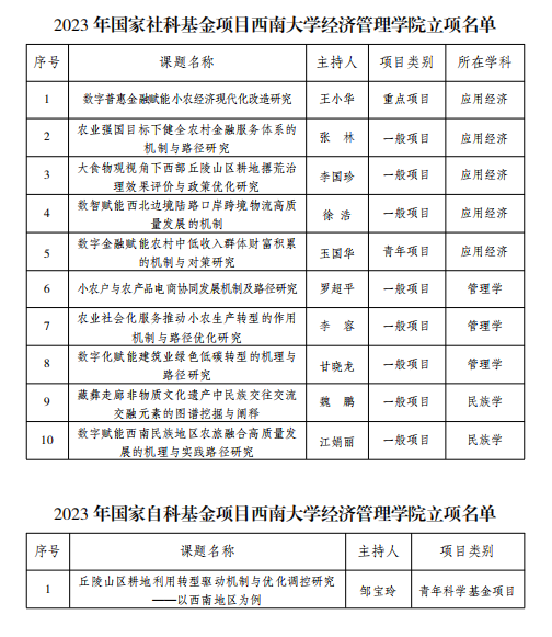 近日,国家自然科学基金委员会和全国哲学社会科学办公室相继公布国家自然科学基金年度立项项目和国家社会科学基金年度立项项目。公司延续前两年良好状态,再次喜获丰收,分别获得国家社会科学基金项目10项和国家自然科学基金项目1项。