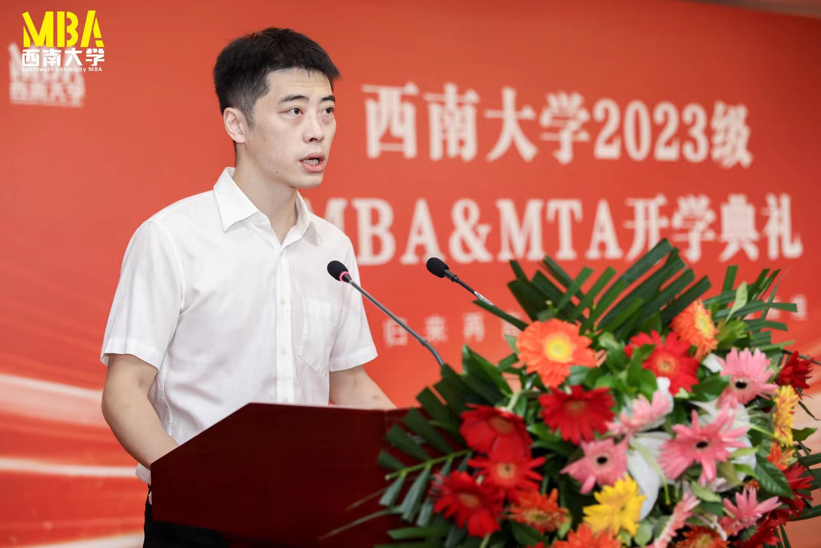 随后,金主任就“怎样读好西大MBA”进行了经验分享。在三年的求学时间里,同学们应围绕教学安排,有计划、有针对、有重点地开展学习与社会实践。以“疾风知劲草,烈火见真金”之势,学会时间管理,解决工学矛盾,持之以恒,以汝今之所学,赋明日之能!希冀学子们在毕业之时,能满怀信心的说:天生之约,此生值得;求学西大,商行天下!