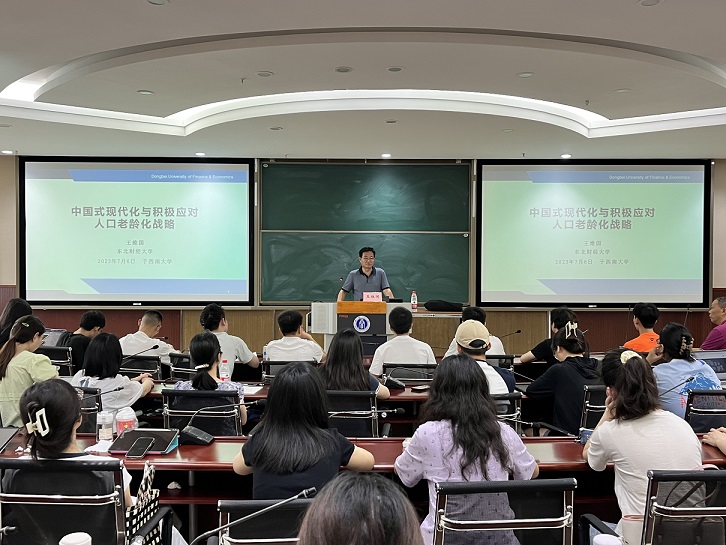 7月6日上午,东北财经大学王维国教授应公司邀请,于公司B203做了题为“中国式现代化与积极应对人口老龄化战略”学术报告,公司师生90余人参加了此次讲座。讲座由sunbet经理祝志勇教授主持。
