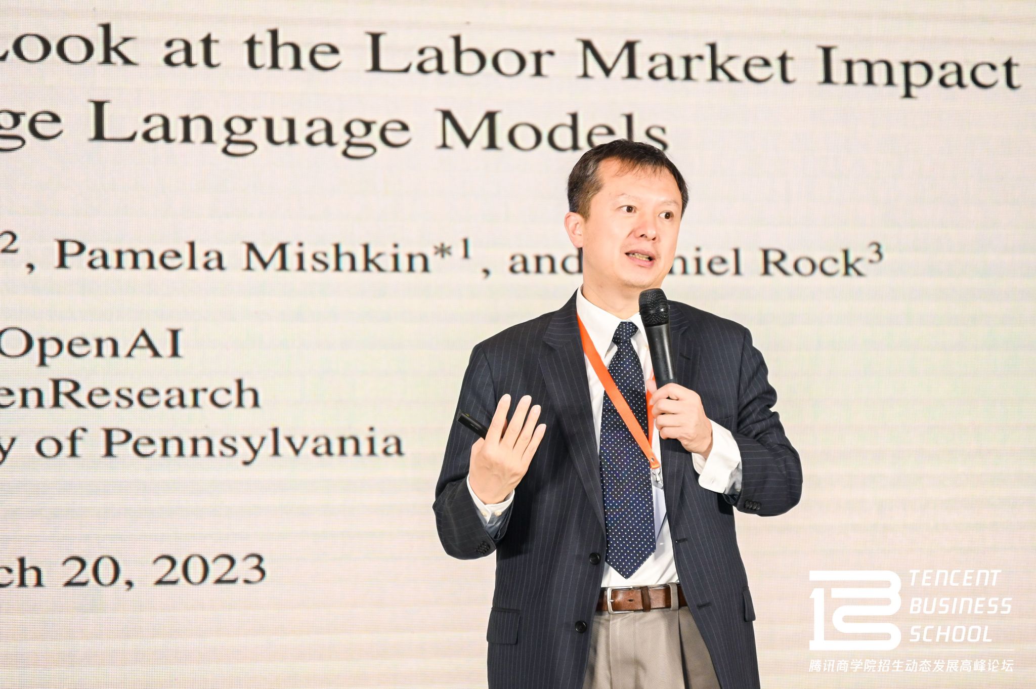 中国科学技术大学讲席教授、科技商公司执行经理、管理公司执行经理、国际金融研究院经理叶强为本次论坛进行了开场发言,主题为《从ChatGPT到科技商学创新人才培养》,并从ChatGPT带来的冲击、数字经济时代的创新、数字经济时代的企业管理、数字经济时代的人才培养四方面进行阐述。