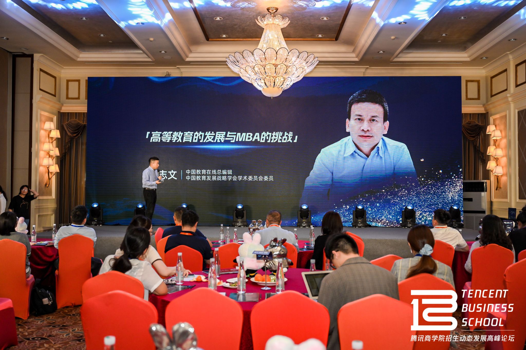 在主题演讲环节,中国教育在线总编辑、中国教育发展战略学会学术委员会委员陈志文作了主题为《高等教育的挑战与MBA的发展》的演讲,他表示MBA教育和高等教育一样面临着巨大挑战,应当直面问题,办出特色,走上高质量发展之路。