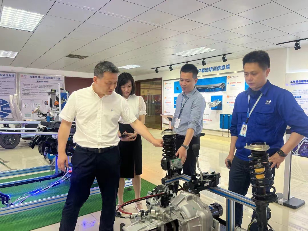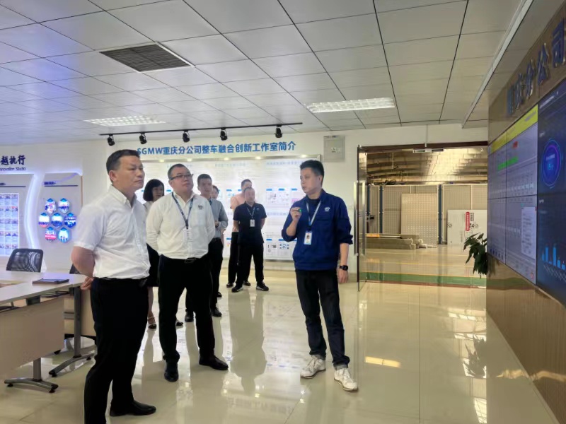 上汽通用五菱重庆分公司党委副书记兼人力资源科经理汤政宪等领导对金绍荣一行的到来表示热烈欢迎并陪同参观了员工活动中心、总装车间、发动机工厂以及智造技术融合室,就企业发展状况、企业文化与理念、生产一线情况等作了详细介绍。