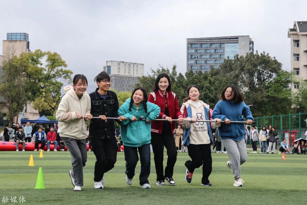 本次运动会比赛项目共27项,其中田径项目15项,趣味项目11项,还有教师羽毛球联谊赛。开幕式结束后,田径项目和趣味项目随即展开。在趣味项目“毛毛虫竞速”中,选手们两组一轮,跨上毛毛虫“战骑”,共同控制毛毛虫前进。他们的脸上洋溢着灿烂的笑容,精彩的表现赢得了观赛同学的热烈掌声。在接下来“无敌风火轮”的比赛中,参赛选手们齐心协力,利用巧妙的方法推动风火轮快速向前,彰显了团结合作的体育精神。