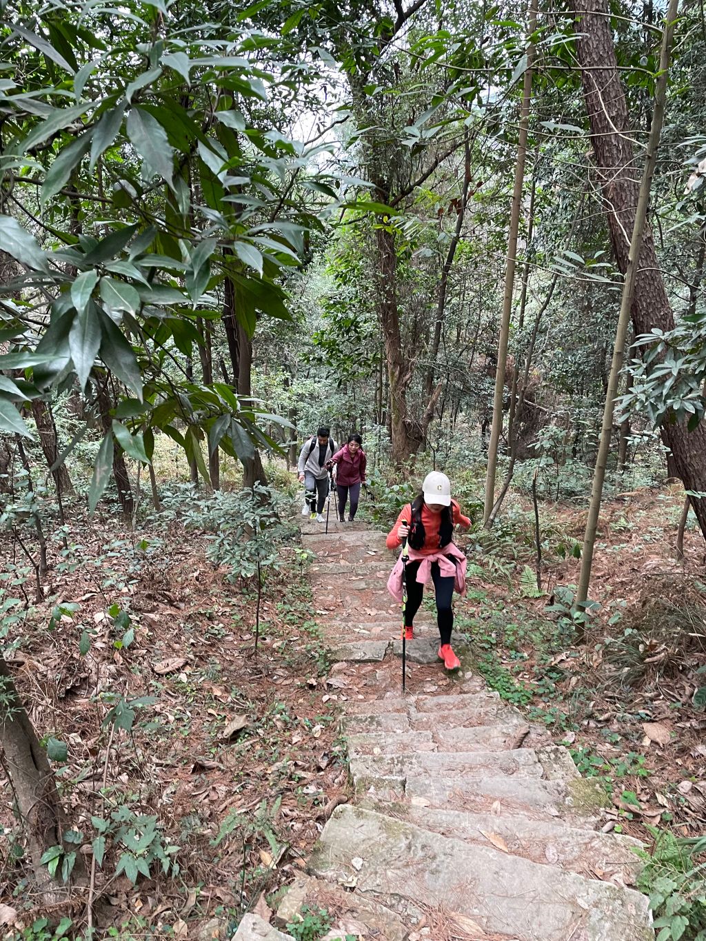 早上八点,重庆的队员们在施光南剧场集结完毕,整装待发。在沙11队长邹井行和沙10超A队员邓鑫春的带领下,大家从重庆著名的黄葛古道出发,朝着南山行进。经过一段丛林穿行后进入铜锣山脉,这段路的坡度对于新人来说,挑战无疑是巨大的,然而整个队伍行进的节奏却没有被打乱,依然保持着原有的速度。