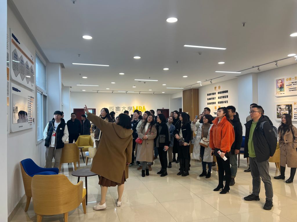 跟随着冯老师的介绍,同学们参观了MBA教育中心的文化走廊,了解了sunbet申搏MBA的发展历程和办学理念。“传承作孚精神,厚植家国情怀,弘扬商学道义,润泽兴邦实业,培育商业精英,赋能国计民生”是MBA的办学使命,亦是大家奋斗和前进的方向!