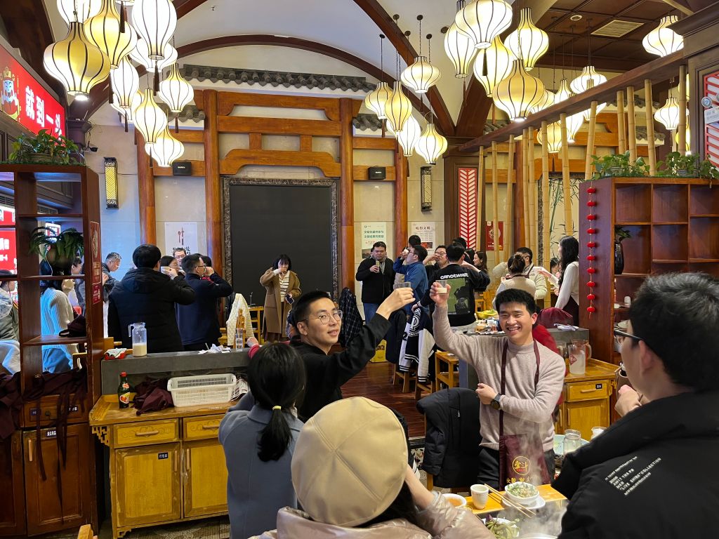 在聚会的最后一站,在花灯璀璨、良辰美景的团圆夜,同学们以酒为媒,把酒言欢,畅谈学业、事业、家事、国事。在觥筹交错间,在欢声笑语中,同学们的心更加紧密地联系在一起,本次班级团建活动也圆满落下帷幕。