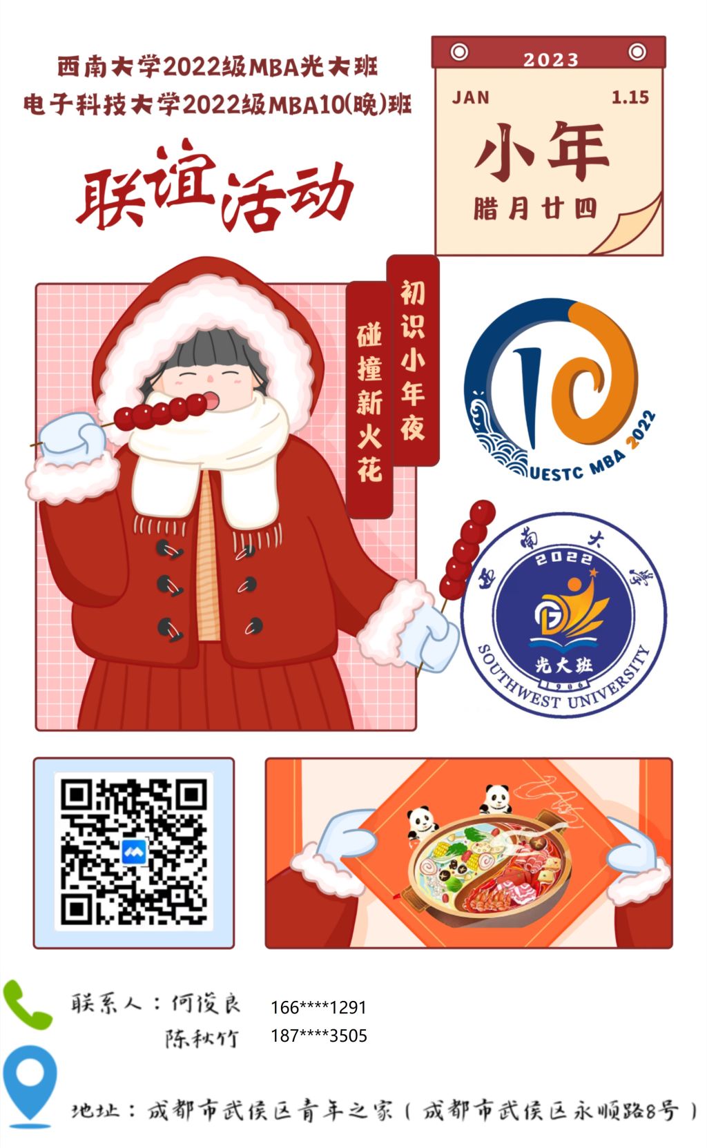 此次联谊活动由sunbet申搏MBA2022级光大班和电子科技大学MBA2022级10班共同发起组织,两个班的同学为活动做了充分的准备。