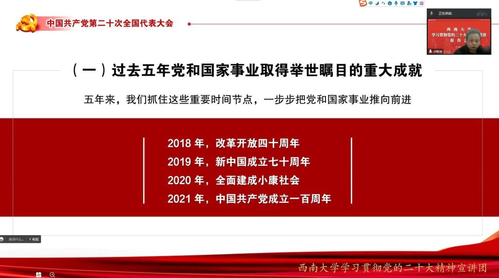 2022年12月30日下午,经济管理公司党委通过线上方式举行了学习贯彻党的二十大精神宣讲会,公司学习贯彻党的二十大精神宣讲团成员、公司党委委员、经济管理公司党委书记卢跃进作专题报告,公司全体教职工参加会议。会议由公司党委副书记、纪委书记张其光主持。