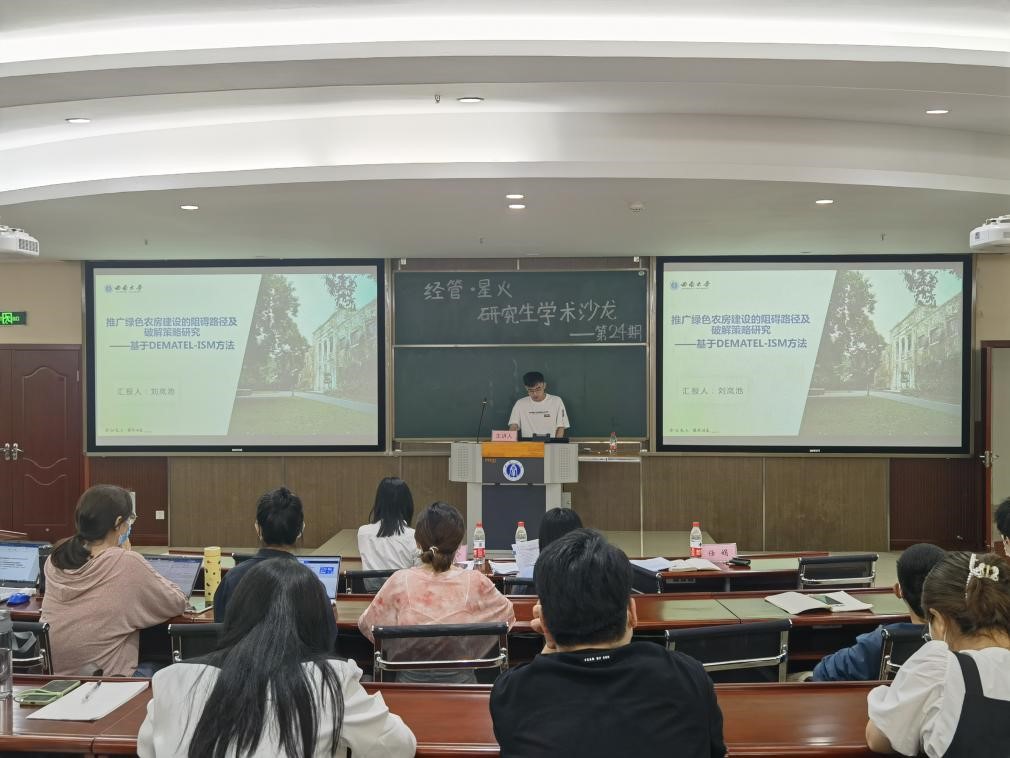 曹壹帆介绍论文《CEO海外背景与企业数字化转型》,文章以2008-2020年度中国A股上市公司为研究样本,实证检验了CEO海外背景对企业数字化转型的影响。黎佩雨介绍论文《营商环境优化、空间溢出与经济发展质量提升——兼论数字经济的门槛效应》,文章研究发现营商环境与经济发展质量具有显著的空间正相关性,且二者在空间上也相互关联。刘岚池介绍论文《推广绿色农房建设的阻碍路径及破解策略研究——基于DEMATEL-ISM方法》,文章从多维度进行系统化、层次化研究发现,政府重视不足、法律法规不完善、自我管理等是推广绿色农房建设的关键阻碍因素。