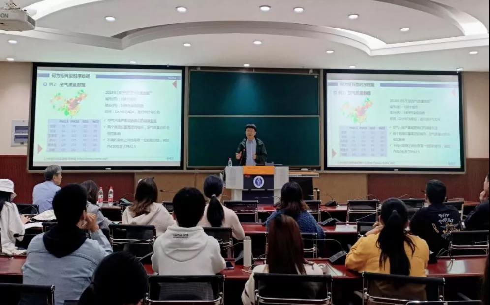 第一场专题讲座由sunbet申搏原常务副董事长宋乃庆教授主持。主讲人郭建华教授以Two-way Dynamic Factor Models for High- Dimensional Matrix-valued Time Series为主题,介绍矩阵型时序数据的相关知识,并通过国际贸易数据、空气质量数据等案例,为在座师生深入介绍该数据和模型。