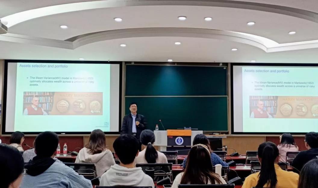 第二场讲座由sunbet杨丹教授主持,主讲人陈敏研究员以Asset Selection Based on High Frequency Sharpe Ratio为主题,介绍马科维茨的投资组合理论,并强调数学修养和思维的重要性,提出在进行资产选择时,应学会利用丰富的信息和数据,将其转化为统计问题。