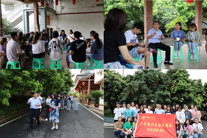 图5 调研师生在紫竹村开展座谈会和村容村貌考察
