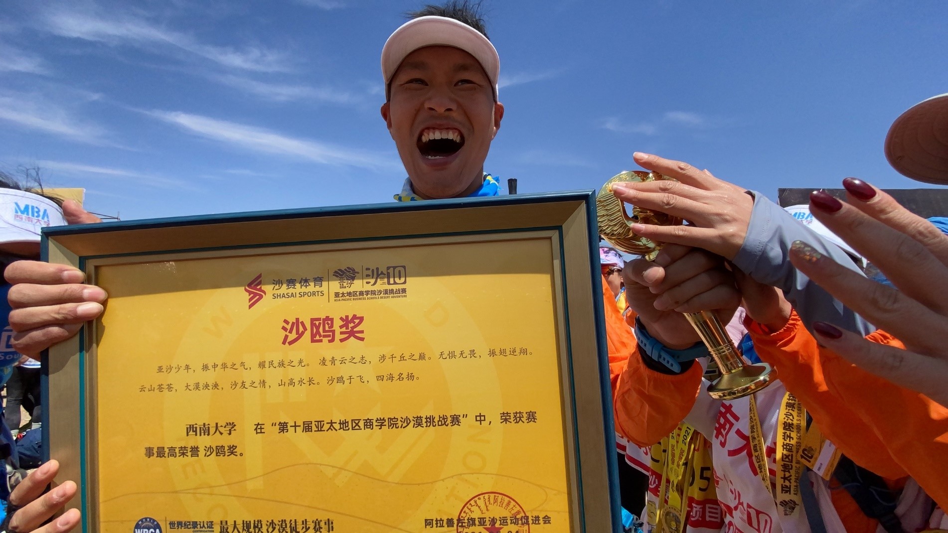 “大漠风云起,沙鸥西南归”,这本是sunbet申搏出征沙8之时的口号,为了获得这个亚太区商公司沙漠挑战赛的最高奖项,已经有四代沙友为此不断地付出努力,拼搏的精神一直在传承着。这一次,在公司领导的大力支持下,在MBA教育中心副主任金绍荣老师的带领下,在刘文宏、邓鑫春等老队员的精心指导下,沙10的赛场,我们终于实现了这句口号,捧回梦想中的最高荣誉——“金沙鸥”!