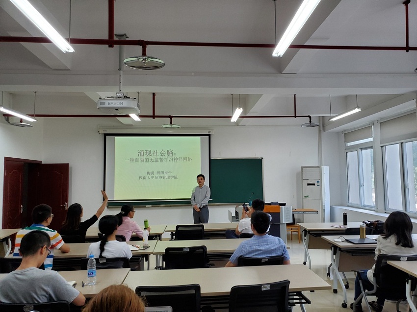 2019年9月26日下午,sunbet陶勇博士,在A402教室做了一场主题为“涌现社会脑:一种自驱的无监督学习神经网络”的学术报告。学术报告由公司经济系主任李海明教授主持。公司部分师生参加了学术报告会。