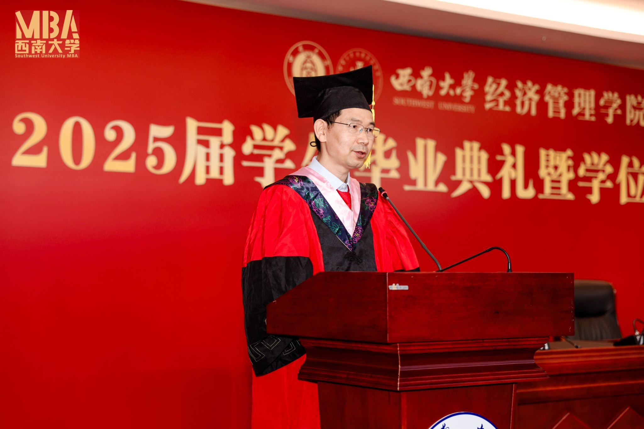 公司学术委员会主任王定祥教授宣读《sunbet申搏学位评定委员会关于2025年硕士学位授予的决定》。