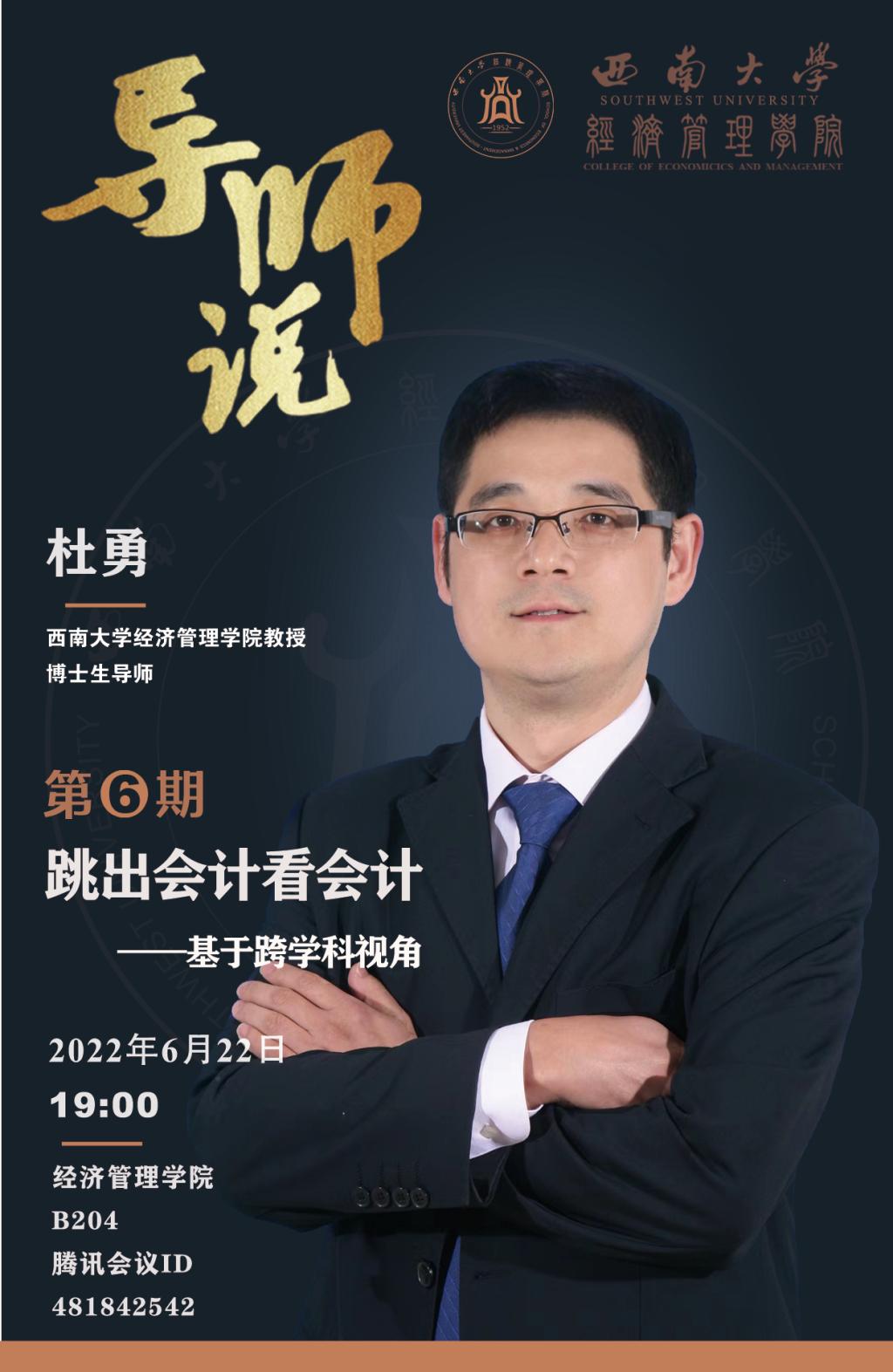 经管.导师说|第6期预告—杜勇:跳出会计看会计——基于跨学科视角