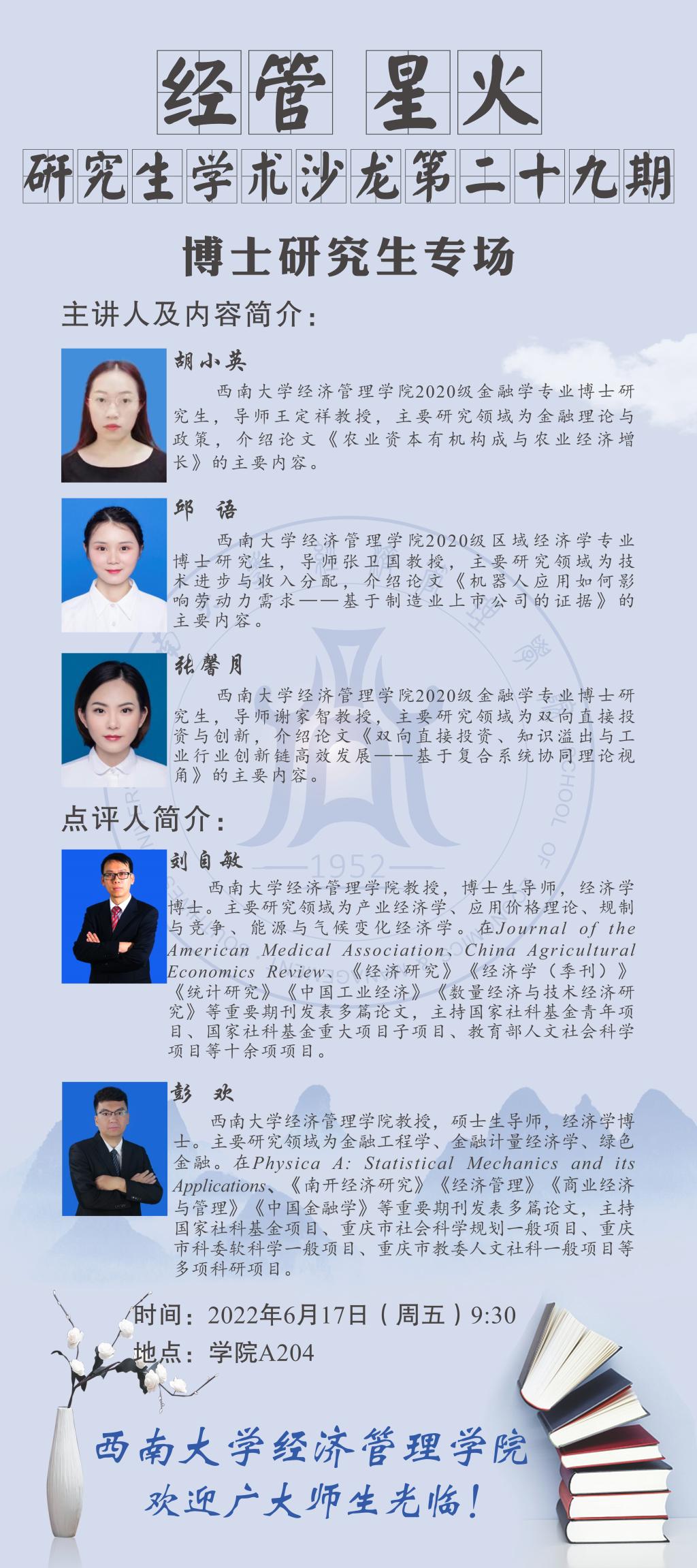 6月17日研究生学术沙龙预告