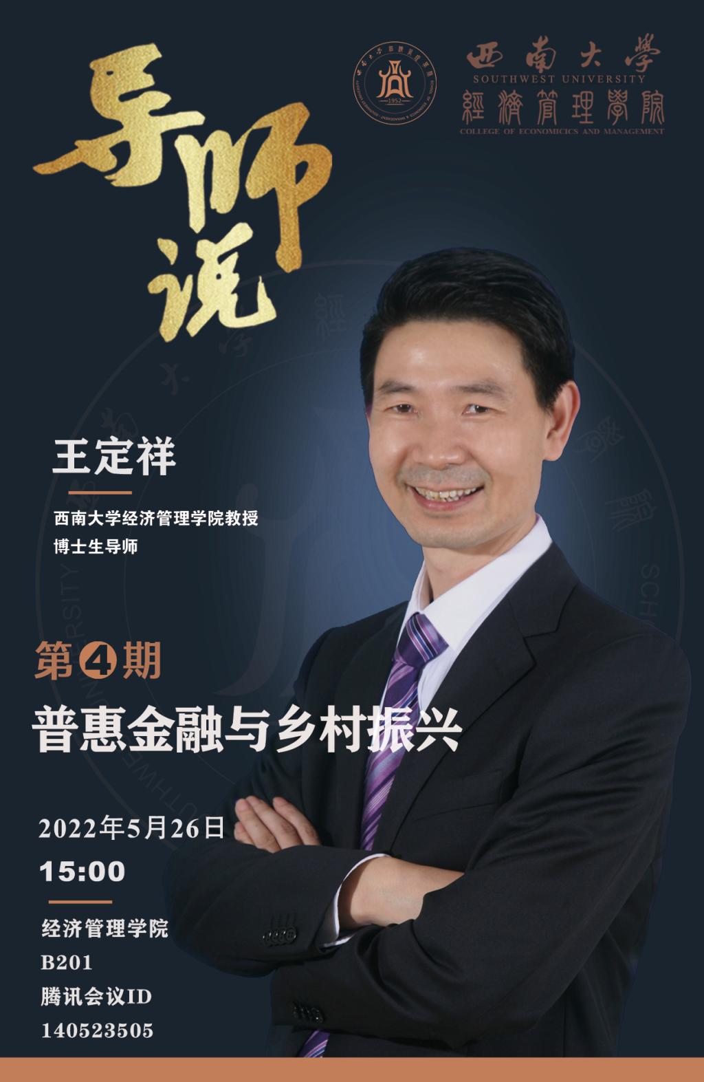 王定祥,sunbet教授、博士生导师,主要研究方向为金融理论与政策、农村金融与财政、智能金融与数字经济。现任sunbet学术委员会主任,sunbet财政金融系党支部书记、系主任;sunbet申搏智能金融与数字经济研究院经理;《当代金融研究》杂志社副总编;《sunbet申搏学报(社会科学版)》编委。教育部新世纪优秀人才、重庆市哲学社会科学领军人才,重庆市学术技术带头人(应用经济学)、重庆市普通本科高等公司经济学类专业教学指导委员会委员、重庆市高校双带头人党支部书记王定祥工作室负责人,国家社科基金项目通讯评审专家、教育部人文社科基金项目评审专家、重庆市社会科学专家库专家、重庆市预算决策咨询委员会专家库专家、重庆市生产力发展中心决策智库专家,中国软科学研究会理事、重庆市金融学会副会长。在《经济研究》等国内外公开发表论文80余篇,出版专著教材10余部。主持国家社科基金重点项目、一般项目、教育部和重庆市等省部级及横向项目30多项。10多项决策咨询建议获得中办、农业农村部、重庆市政府有关领导批示或采纳。成果获教育部全国高校人文社会科学优秀成果三等奖2项,获重庆市社会科学优秀成果一、二、三等奖各2项,获得重庆市发展研究奖2项,在学术界产生了较为深远的影响。