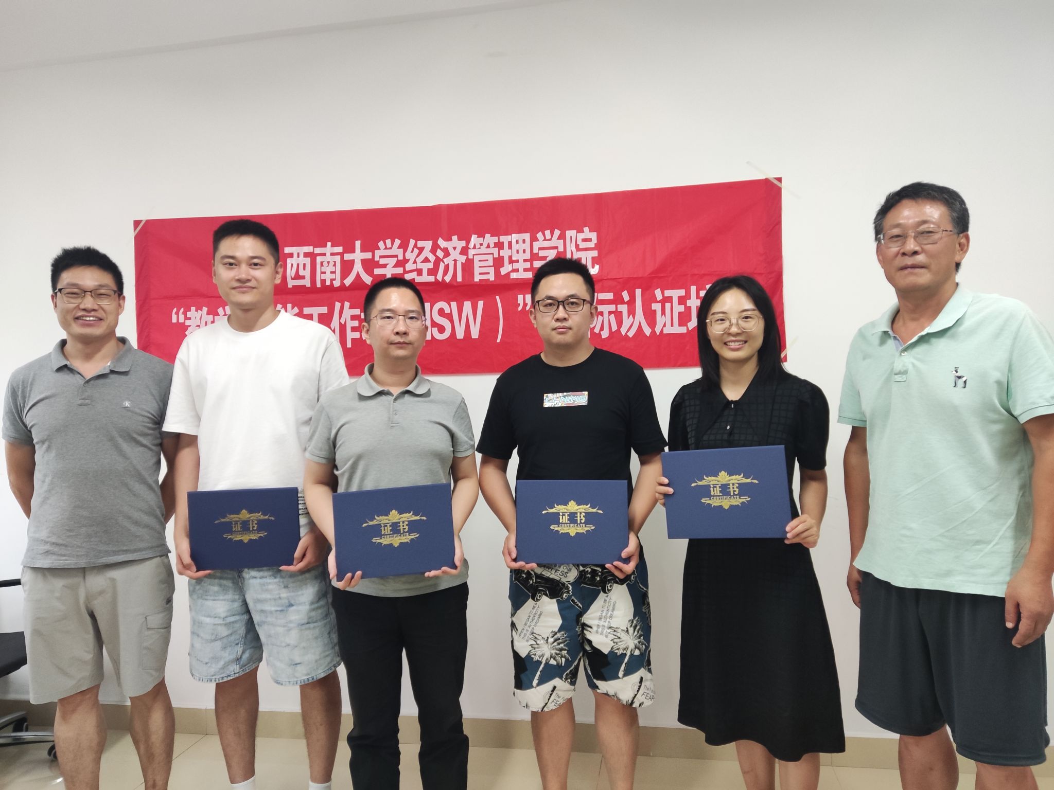 8月23日下午,sunbet工商管理系主任邓宗兵教授和教学工作办公室主任王小华教授为完成ISW培训的八位教师学员颁发了结业证书