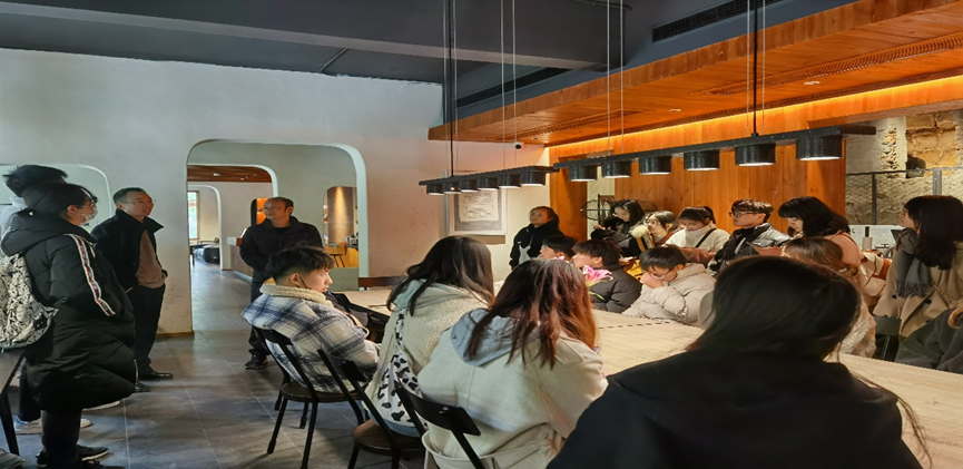 在调研考察现场,既白民宿运营总监王绣华、漫漫崖居总经理钱云和元门清溪总经理谭刚为同学们分享了旅游民宿的资源依托、设计理念,特色氛围营造、市场定位、运营策略和经营现状。同学们详细了解了三个精品旅游民宿的周边环境、区位条件与建筑特色风貌,认真考察了三个民宿的功能空间格局、客房、餐饮以及休闲、会议等硬件设施的配置标准与特色,并就民宿的接待能力、客源群体特征、运营困境、收益回报、主题活动引流等事关旅游民宿生存与发展的关键问题与三位运营经理进行了深入的探讨与交流。