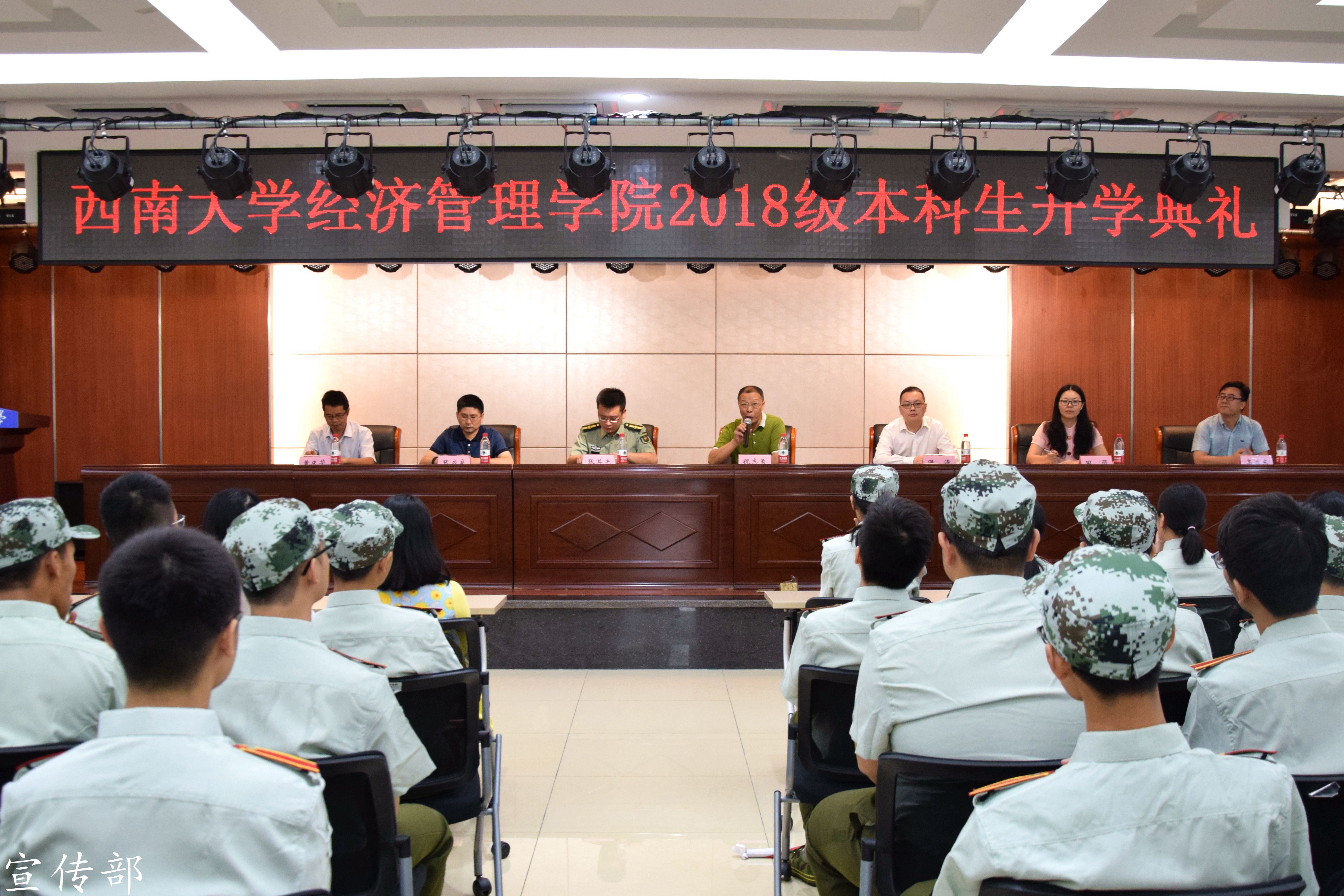开学典礼,既是隆重热烈的欢迎仪式,也是新生们挥鞭向前的出征仪式。2018级的同学们将在未来的四年里,启迪智慧、学会为人、笃学砥砺,为“智周万物,道济天下”而努力奋斗、拼搏。在此,衷心祝愿全体同学能在宝贵的大学时光里,刻苦钻研,踏实前行,圆梦经管!