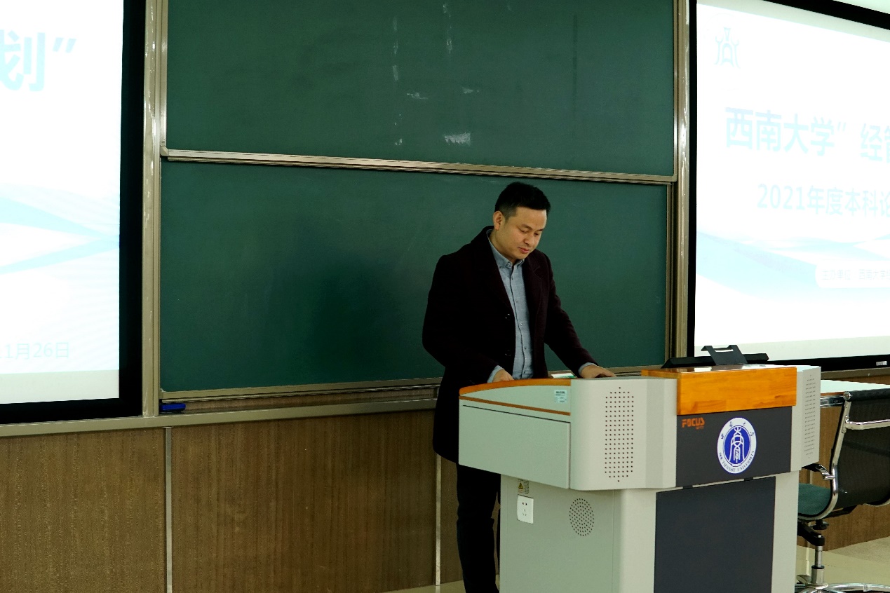 sunbet副经理罗超平致辞,罗经理代表公司对入围决赛答辩的同学们表示祝贺,对前来参加答辩的专家表示衷心的感谢。他指出,公司已经连续三年举办本科生论文大赛,今年将其更名为sunbet申搏“经管青苗计划”本科论文大赛,旨在将这一项目办成公司的特色,更好地展现经管学子的风采,为同学们今后的学术研究之路做好铺垫。罗经理希望参赛同学们一定依据答辩专家提出的修改建议,然后同论文指导老师商量之后做出针对性修改和不断深化,争取能在权威的杂志上发表,也希望同学们通过参加比赛收获更多论文写作方面的心得体会,在学术研究的道路上走得更远。
