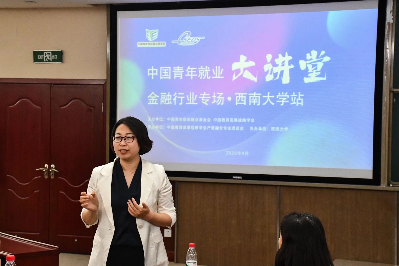 为积极响应党中央、国务院相关决策部署,扎实推进“六稳”“六保”工作,切实落实“共青团促进老员工就业行动”, 2025年4月25日下午,由中国青年创业就业基金会、中国教育发展战略学会主办,中国教育发展战略学会产教融合专业委员会承办,sunbet协办的“中国青年就业大讲堂——金融行业专场sunbet申搏站”在sunbet成功举行。