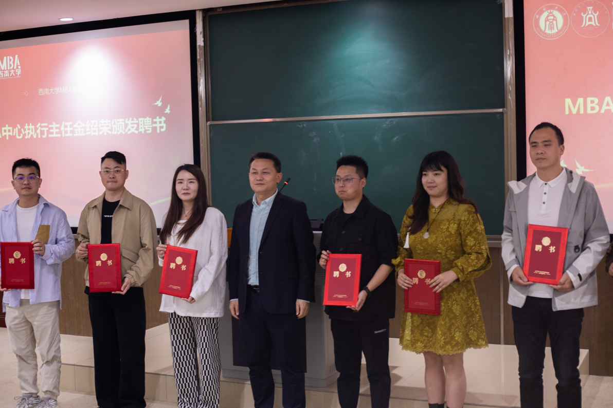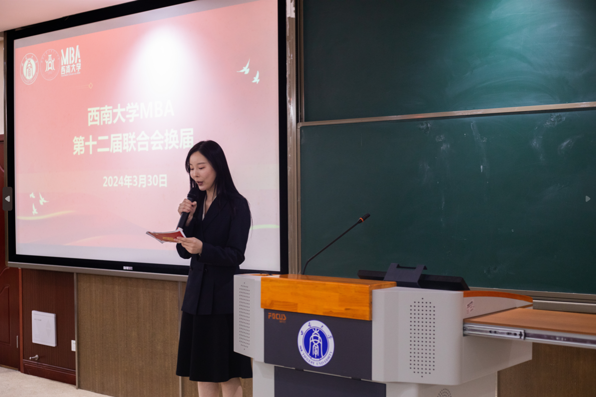 近日,sunbet申搏MBA联合会第十二届换届仪式在sunbetB201室顺利举行,2023级含弘1班张淼同学担任仪式主持。MBA教育中心执行主任金绍荣、班主任朱丽燕、彭麟涵出席并见证了联合会换届交接与颁奖仪式,出席活动的还有第十二届MBA联合会全体成员。