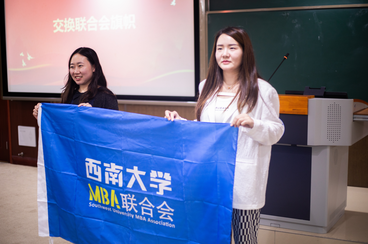 随后,第十一届MBA联合会副主席吴昊郑重地将会旗传递给第十二届MBA联合会主席唐霞。主持人宣读MBA联合会第十二届全体干部成员名单,金主任为全体成员颁发证书。