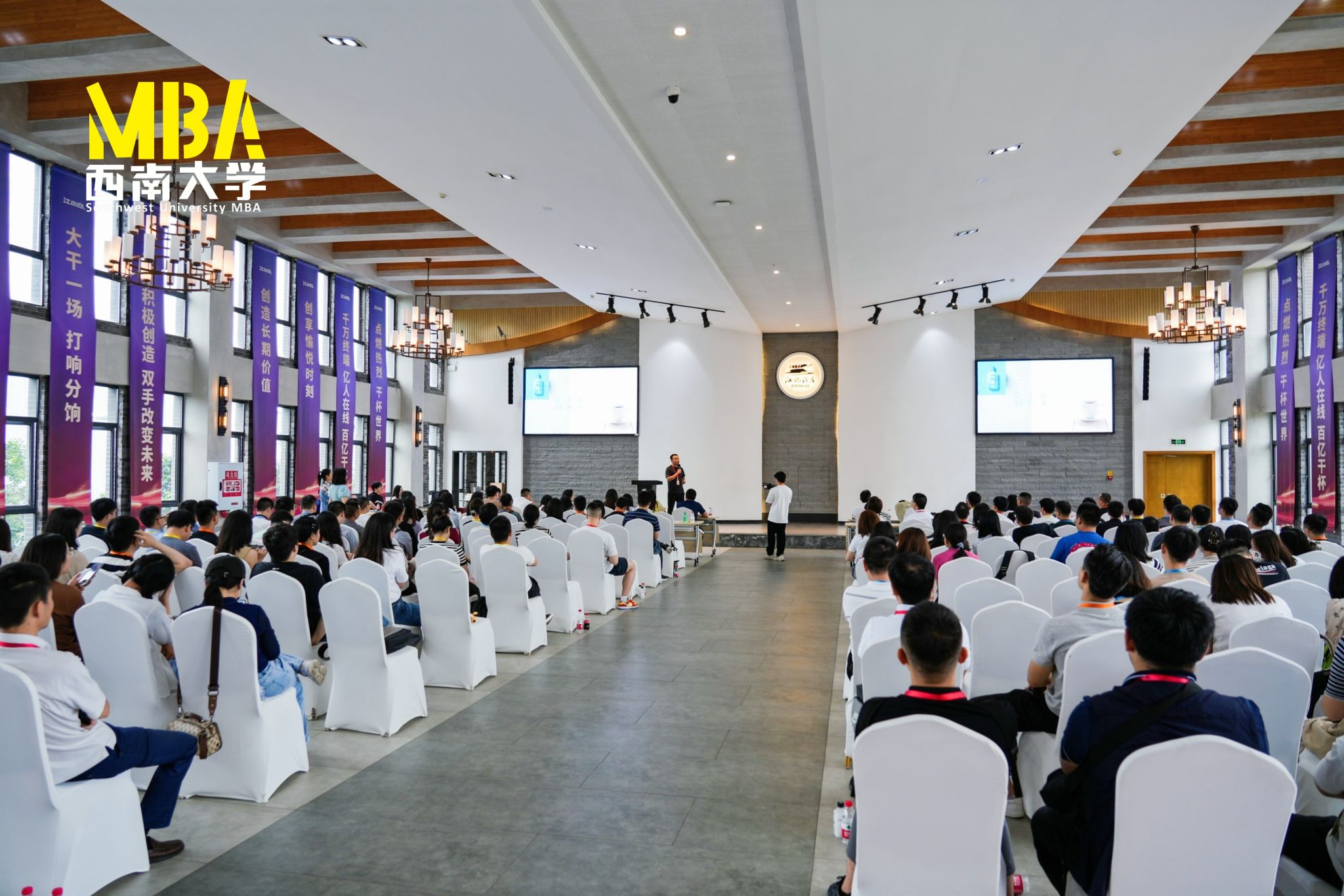 经过午餐和短暂休息后,同学们来到会议厅。江小白品牌大使、国家三级品酒师邹杰伊专题分享了《老味新生 江小白品牌解读》,从用户洞察、品牌思维、情感链接等方面对江小白品牌进行了深入解读。