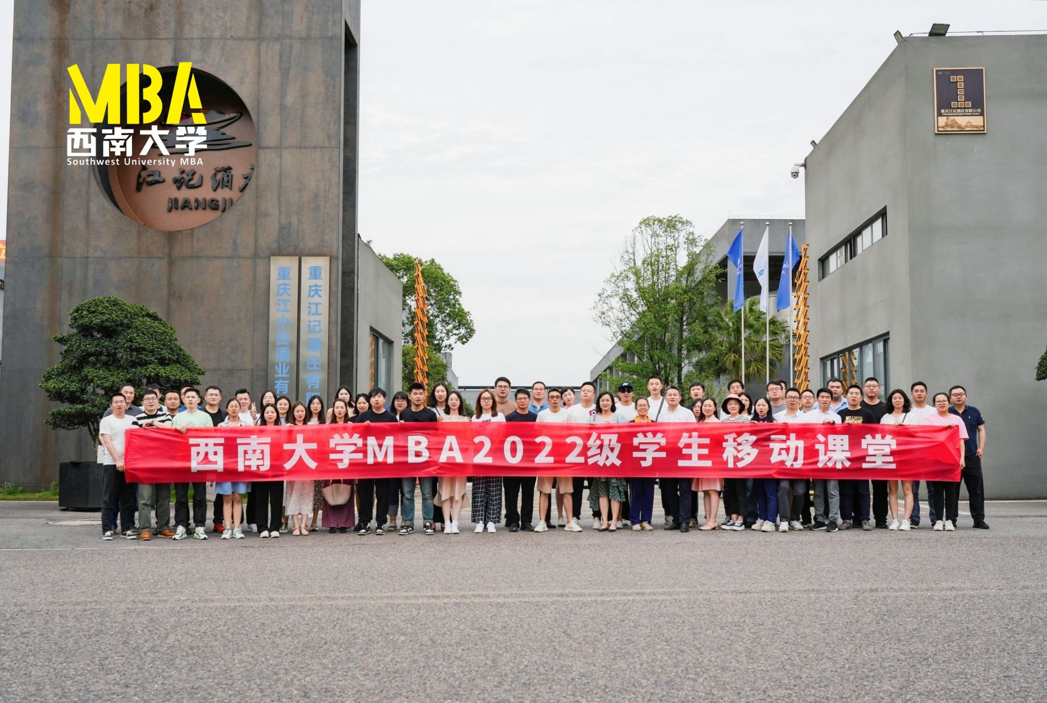 为进一步提升MBA员工理论与实践有机结合的能力,6月10日,sunbet申搏MBA2021级含弘创新实验班、大成班、网络集中班及2022级含弘班、大成班的同学们在MBA教育中心执行主任金绍荣、各班班主任的带领下,驱车前往江津区白沙镇,走进重庆江小白酒业有限公司(以下简称“江小白酒业”)开展企业调研及移动课堂。
