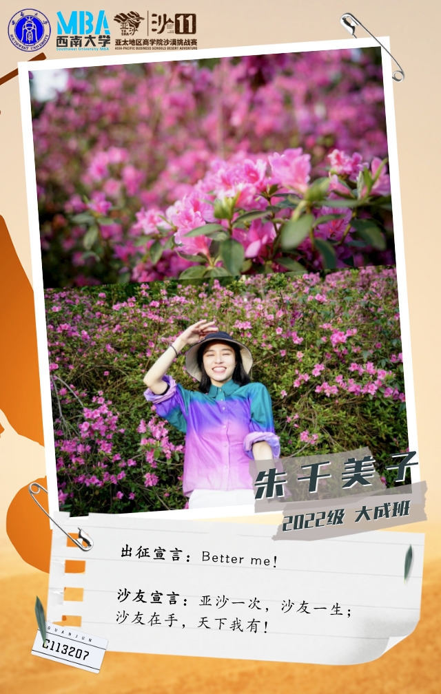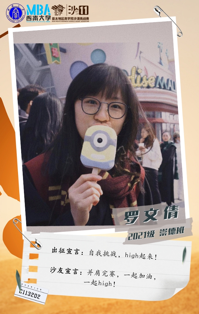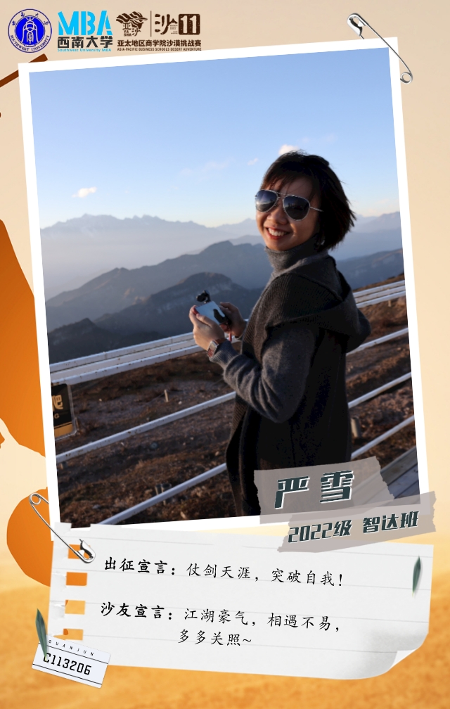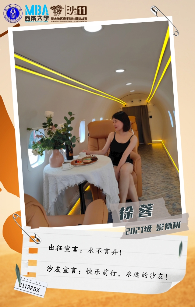 与西大MBA相遇,这种呼唤与感召将在亚沙的旅程变成现实,她坚信:人生的奇遇就是不同维度地对神秘进行探索!她既是C队成员,也是沙11sunbet申搏的随行记者。