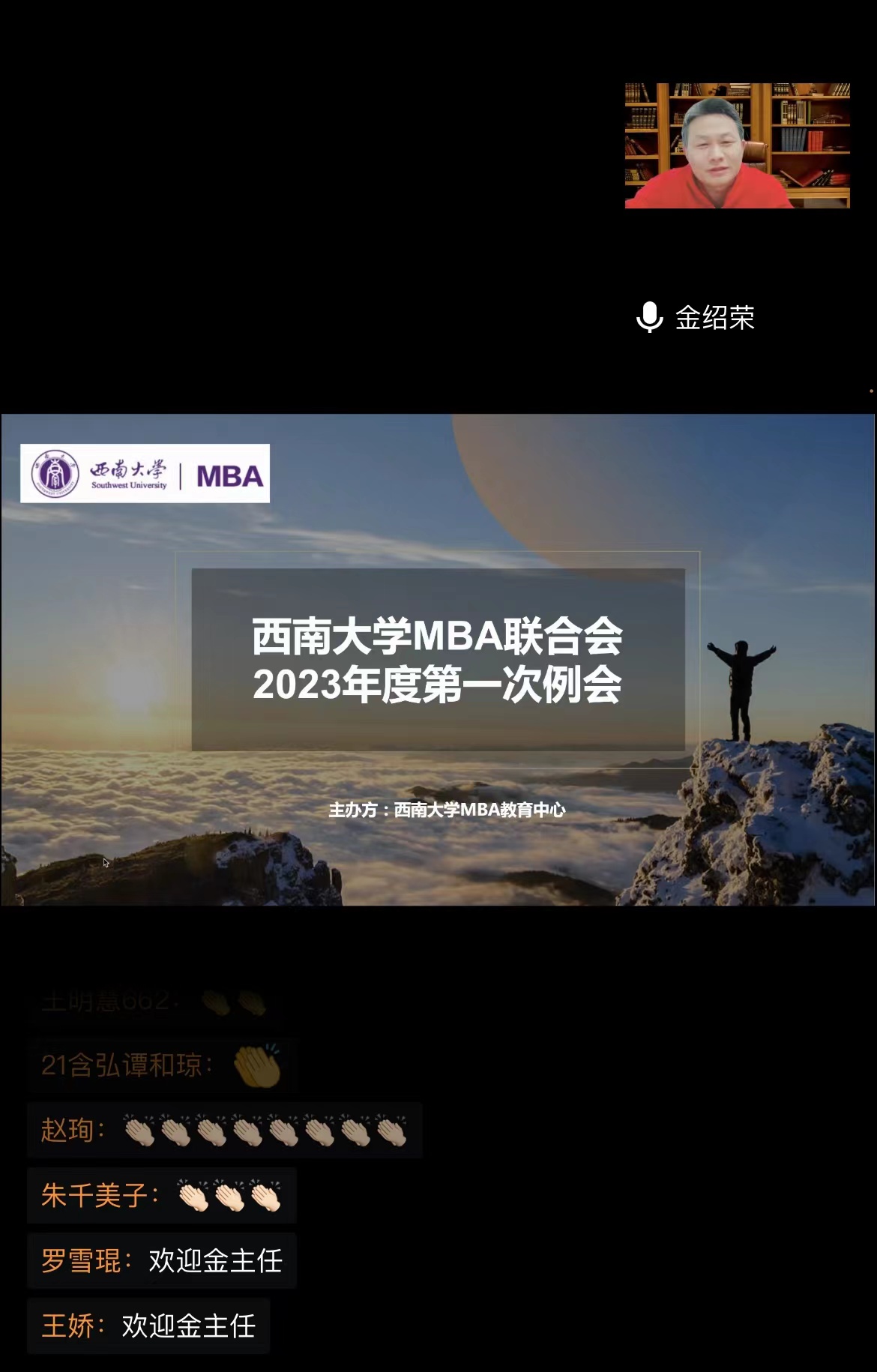 3月15日,sunbet申搏MBA第十一届联合会第一次例会在线上顺利召开,MBA教育中心执行主任金绍荣、李若男老师和第十一届联合会全体成员出席了本次会议。
