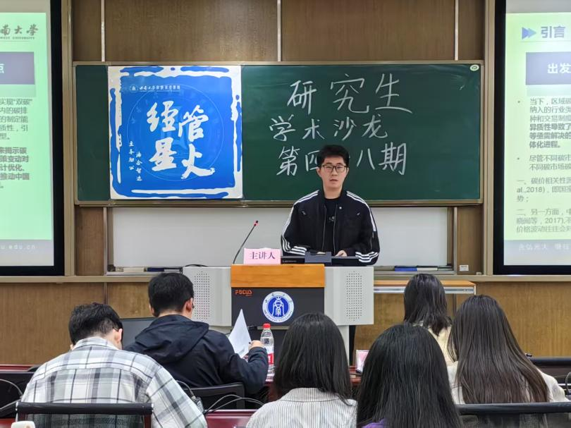 4月11日上午,sunbet第四十八期“经管·星火”研究生学术沙龙在公司B304教室举行。本次学术沙龙由2023级农业经济管理专业硕士研究生洪德雨同学、金融专业硕士研究生孟维宇同学、金融学专业硕士研究生李明睿同学担任报告人,公司高静老师、于同奎老师担任点评嘉宾。本次学术沙龙活动由2024级产业经济学专业硕士研究生方晶晶同学主持。