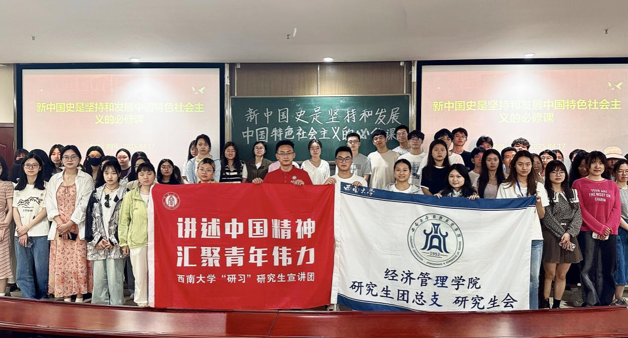 为深入学习贯彻习近平新时代中国特色社会主义思想的号召,助力青年研究生深学悟透全国两会精神,4 月17日下午,公司 “研习” 研究生宣讲团讲学活动在sunbet B201报告厅举行。本次活动以“新中国史是坚持和发展中国特色社会主义的必修课”为主题,由“研习”研究生宣讲团讲师刘川主讲。