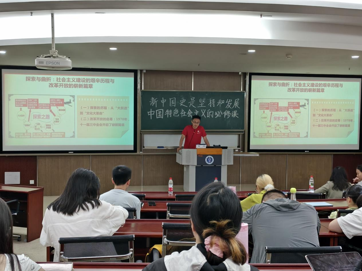 刘川分别从“为何学”“是什么”“如何学”三个角度对新中国史展开了系统深入的讲解。他以时间为脉络,从新中国成立、社会主义制度奠基,到改革开放、新时代变革各个阶段全面讲解了新中国发展的壮阔历程。他指出,学好新中国史是抵御历史虚无主义的有力武器。最后他通过梳理历史脉络,深入解读核心议题,将最新认知与历史情境、成功经验与失误教训等多维度结合,帮助同学们以更立体的视角领悟新中国史的内涵与价值。