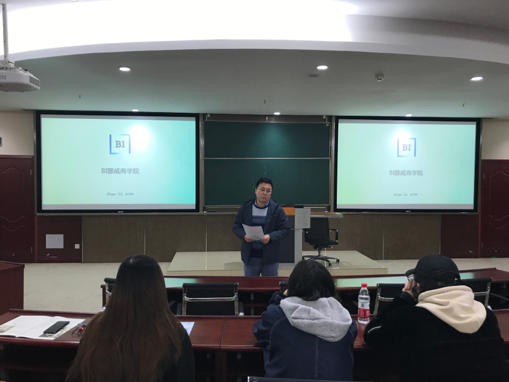 宣讲会伊始,公司国际事务办公室负责人高远东副经理首先向同学们表明了公司会大力支持并鼓励大家参加留学项目的态度,并宣读了公司最新修订的出国(境)外资助管理办法。随后为同学们简明的介绍了拥有全球1% EQUIS/AACSB/AMBA 三大认证的BI挪威商公司。