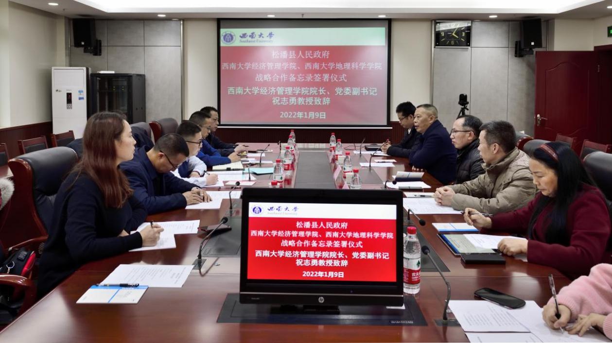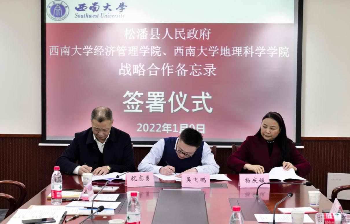 三方就人才培养培训、人才互派交流、科技创新、战略决策咨询、文化旅游交流、生态文明建设和乡村振兴等内容进行对接,围绕支持松潘县经济发展、乡村振兴、社会治理等领域的合作事项进行深入探讨,达成合作意向,签订合作备忘录。