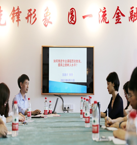 在观看并讨论了胡金焱教授的讲话后,活动进入到“金使品牌”微党课环节,首先由支部书记王定祥教授讲授了《如何推动金融专业课程思政教育,提高立德树人水平》。王书记从思政教育的理论内涵、为什么要推动专业课程思政教育、课程思政教育的内容和如何推动课程思政教育等四个方面入手,通过案例进行了详细地讲解,使教师颇受启发。