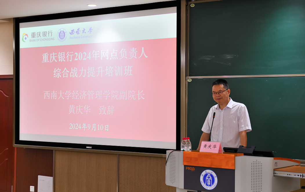 开班仪式上,黄庆华副经理代表承办单位致辞。黄庆华首先向重庆银行表示感谢,对学员们的到来表示热诚挚欢迎。黄庆华指出,培训学习有利于突破思维局限、拓宽观察事物视野,提升自身综合能力,对单位事业发展和个人职业成长都大有裨益。黄庆华希望学员们珍惜难得的进校学习机会,养成终身学习习惯,形成自身综合战力,获取更大职业成就。