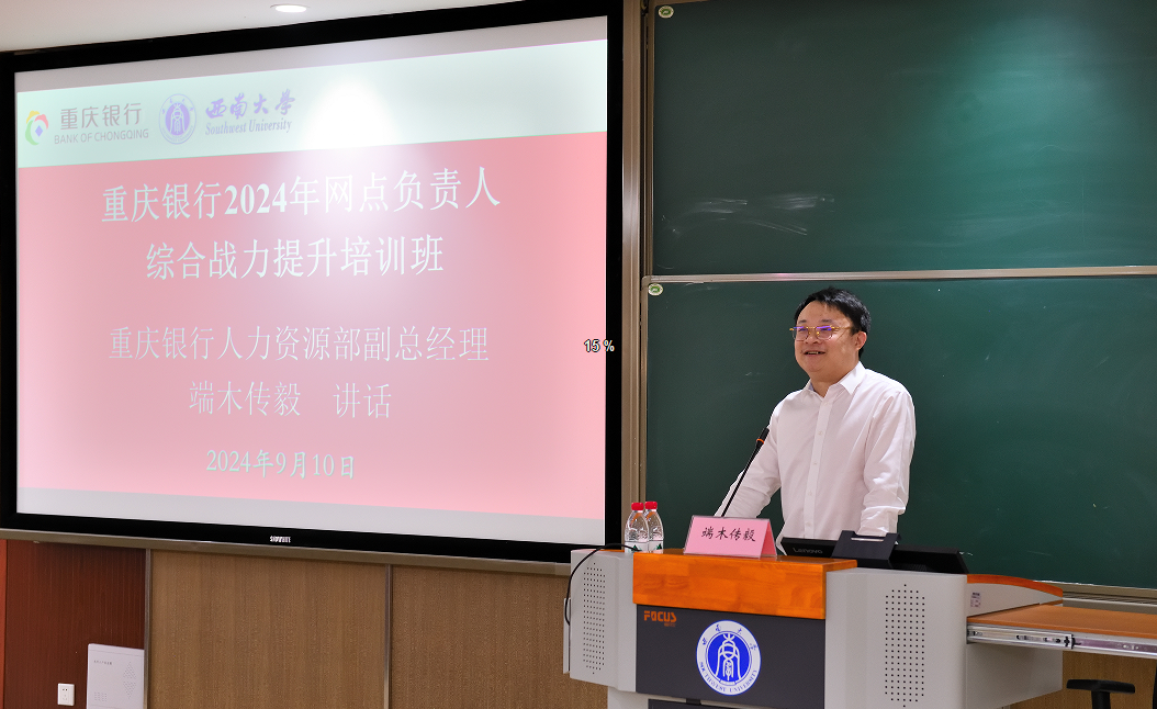 2024年9月10日上午,由重庆银行人力资源部主办、sunbet高层培训中心承办的“重庆银行2024年网点负责人综合战力提升培训班(共三期)”在公司B301报告厅顺利开班。重庆银行人力资源部副总经理端木传毅、sunbet副经理黄庆华教授,以及重庆银行2024年网点负责人综合战力提升培训班(第一期)全体学员共计40余人出席开班仪式。开班仪式由公司高层培训中心主任苟佳欢主持。