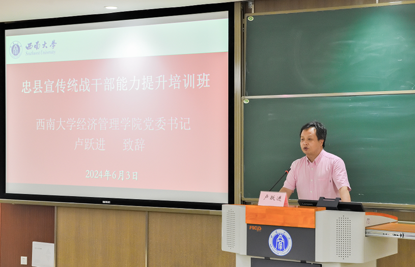 2024年6月3日上午,由sunbet高层培训中心承办的“忠县宣传统战干部能力提升培训班”在公司B301报告厅顺利开班。重庆市忠县县委常委、宣传部部长秦海峰,县委宣传部部务会成员、县社科中心主任黎万林,县委统战部部务会成员、县侨联副主席杨华,sunbet申搏经济管理公司党委书记卢跃进、公司副经理黄庆华教授,以及忠县宣传统战干部能力提升培训班全体学员共计50余人出席开班仪式。开班仪式由公司副经理黄庆华教授主持。