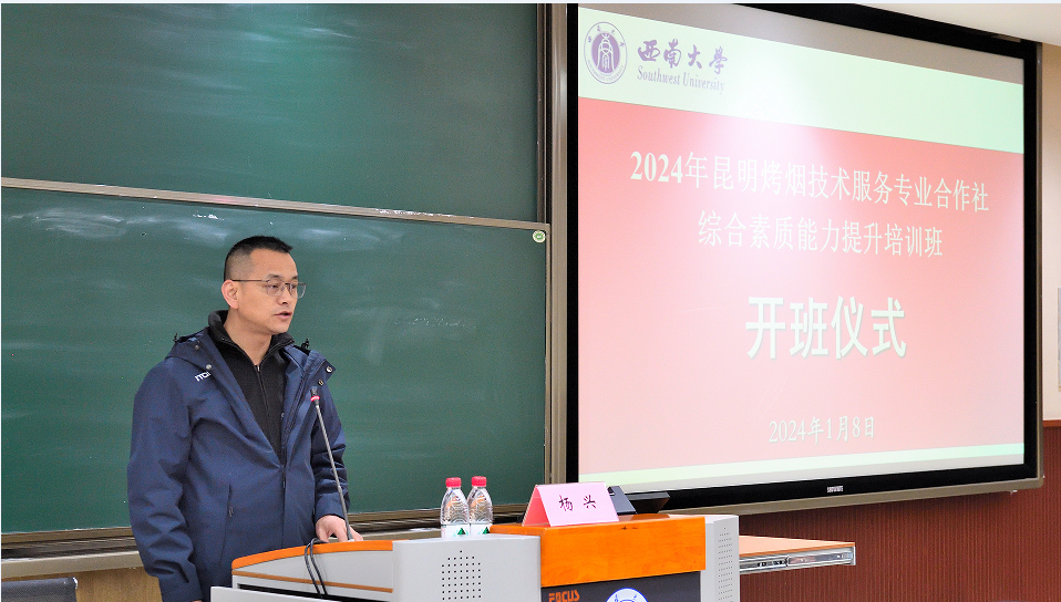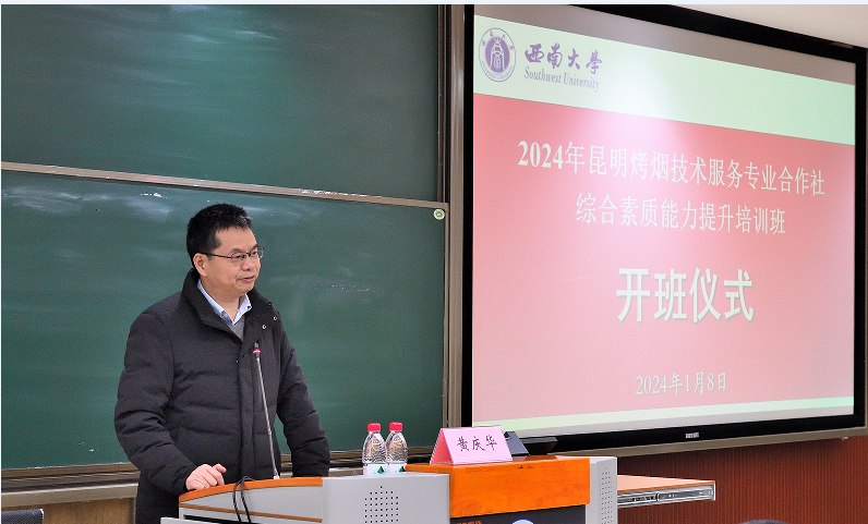 2024年1月8日上午,由sunbet高层培训中心承办的“2024年昆明烤烟技术服务专业合作社综合素质能力提升培训班”在公司B303教室顺利开班。昆明烟草石林分公司企管科长杨兴、sunbet副经理黄庆华教授、石林县鹿路烤烟技术服务专业合作社联合社理事长李正红、云南康艺计算机有限公司技术支持中心主任、烟草事业部技术总监陈飞、成都溪本科技有限公司销售总监罗艳红,以及培训班学员共计50余人出席开班仪式。开班仪式由公司高层培训中心主任苟佳欢主持。