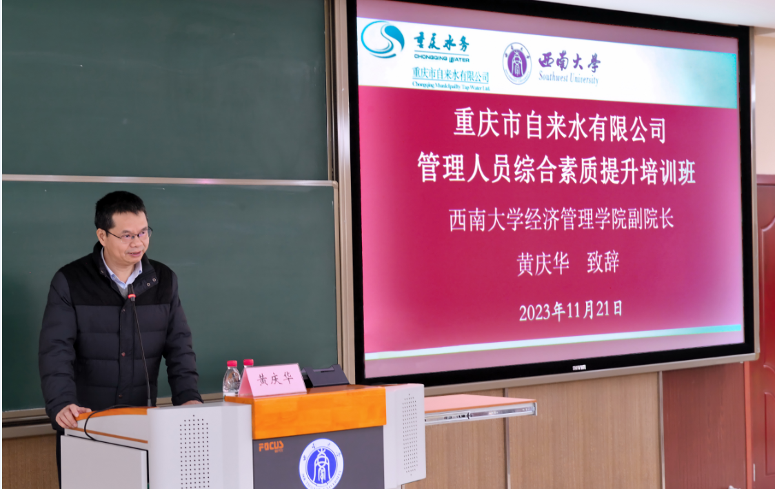 2023年11月21日上午,由重庆市自来水有限公司主办、sunbet高层培训中心承办的“重庆市自来水有限公司管理人员综合素质提升培训班”在公司B301报告厅顺利开班。重庆市自来水有限公司总经理纳新、sunbet副经理黄庆华教授,以及培训班学员共计50余人出席开班仪式。开班仪式由公司高层培训中心主任苟佳欢主持。