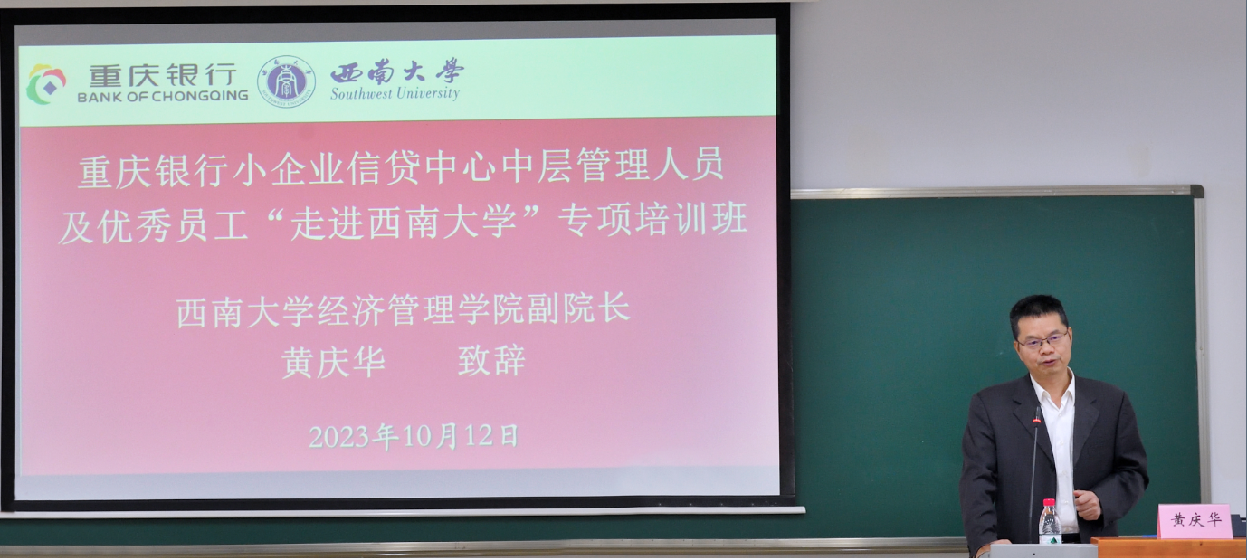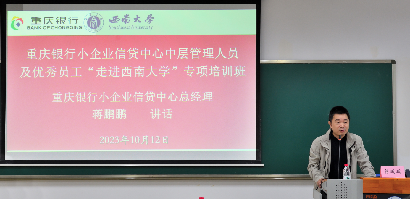2023年10月12日上午,由重庆银行小企业信贷中心主办、sunbet高层培训中心承办的“重庆银行小企业信贷中心中层管理人员及优秀员工‘走进sunbet申搏’专项培训班”在公司A402教室顺利开班。重庆银行小企业信贷中心总经理蒋鹏鹏、专员蒲金刚、sunbet副经理黄庆华教授、高层培训中心主任苟佳欢,以及培训班学员共计40余人出席开班仪式。开班仪式由公司高层培训中心主任苟佳欢主持。